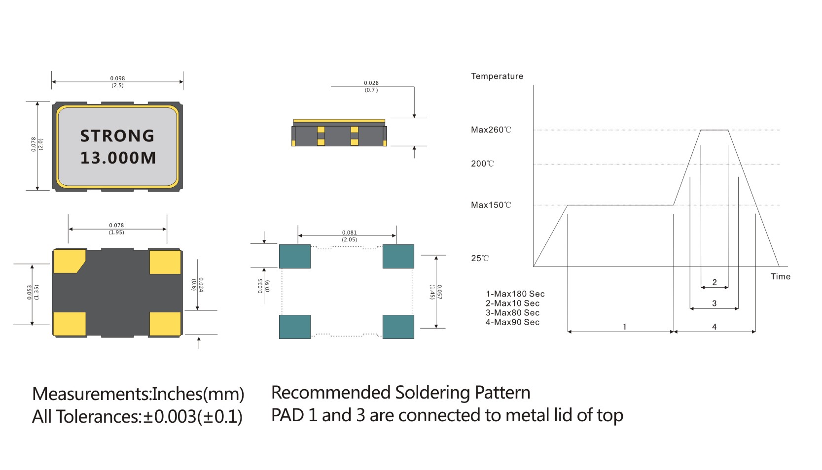 Typical 2.5*2.0*0.7mm ceramic SMD package.