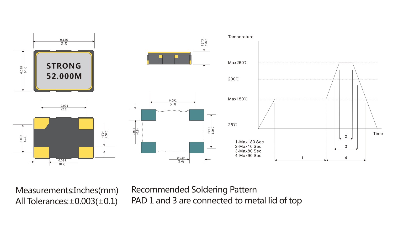 Typical 3.2*2.5*1.2mm ceramic SMD package.