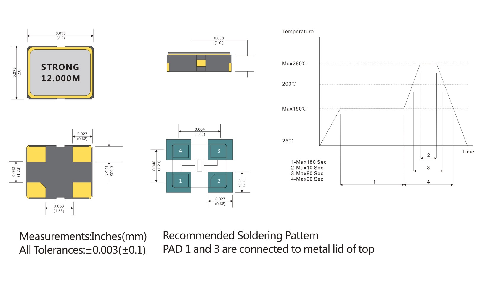 It is a compact and thin ceramic package with a metalized lead for surface mounting