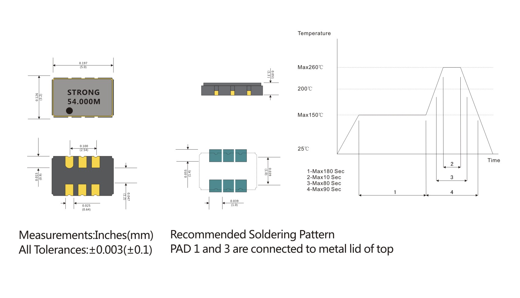 " Typical 5.0*3.2*1.3mm ceramic SMD package.