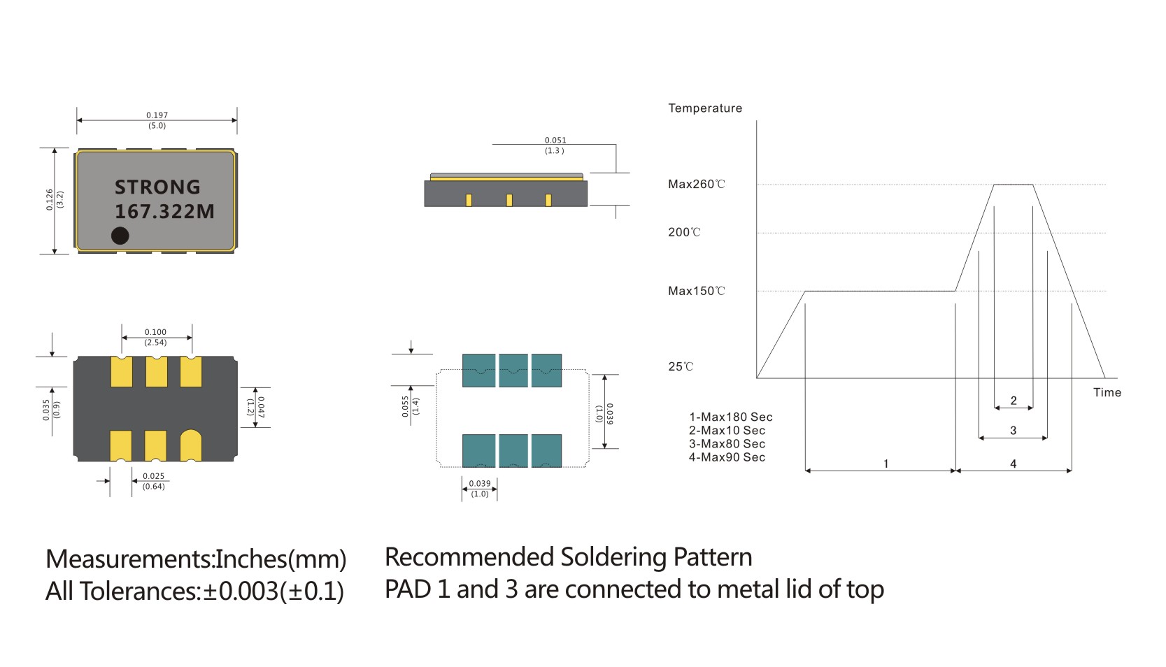 Typical 5.0*3.2*1.3mm ceramic SMD package.